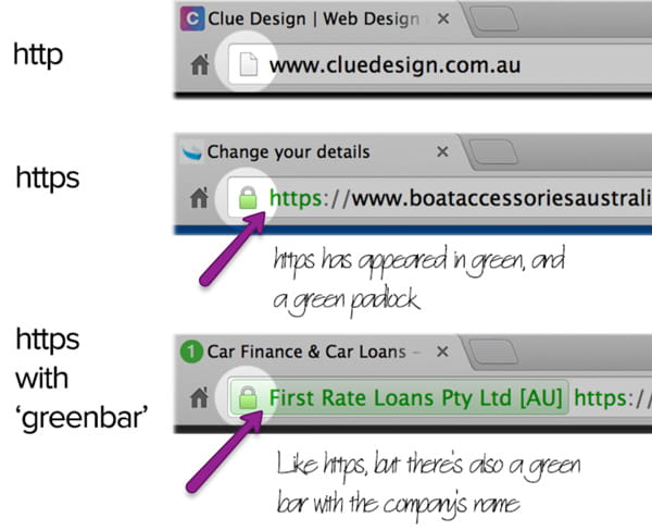 Here’s how you may have encountered these protocols visually whilst surfing the web – these screenshots are from using the Google Chrome browser: