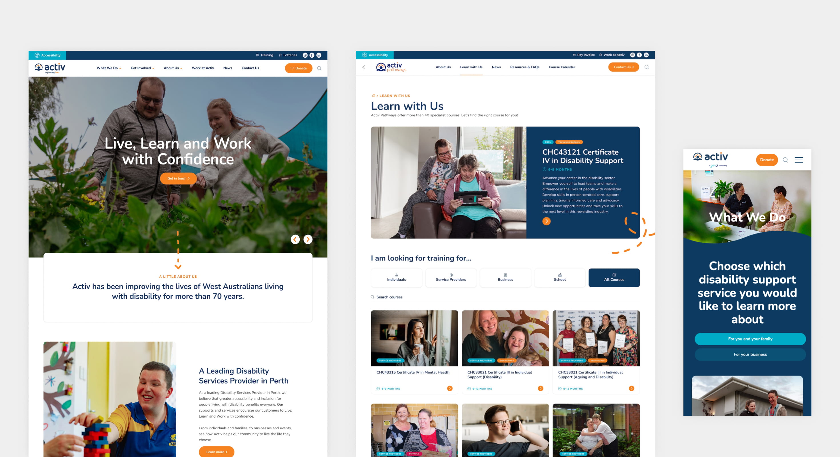 Activ required a modern and cohesive digital experience to strengthen their brand, support lead generation, and amplify advocacy. Their previous website, spanning multiple domains, offered an opportunity to create a more unified platform that could effectively communicate the full breadth of services offered. With plans to grow their market share in priority areas, Activ needed a website that could meet the needs of various stakeholders – people with disabilities, their families, carers, sponsors, and job seekers – while balancing competing priorities.