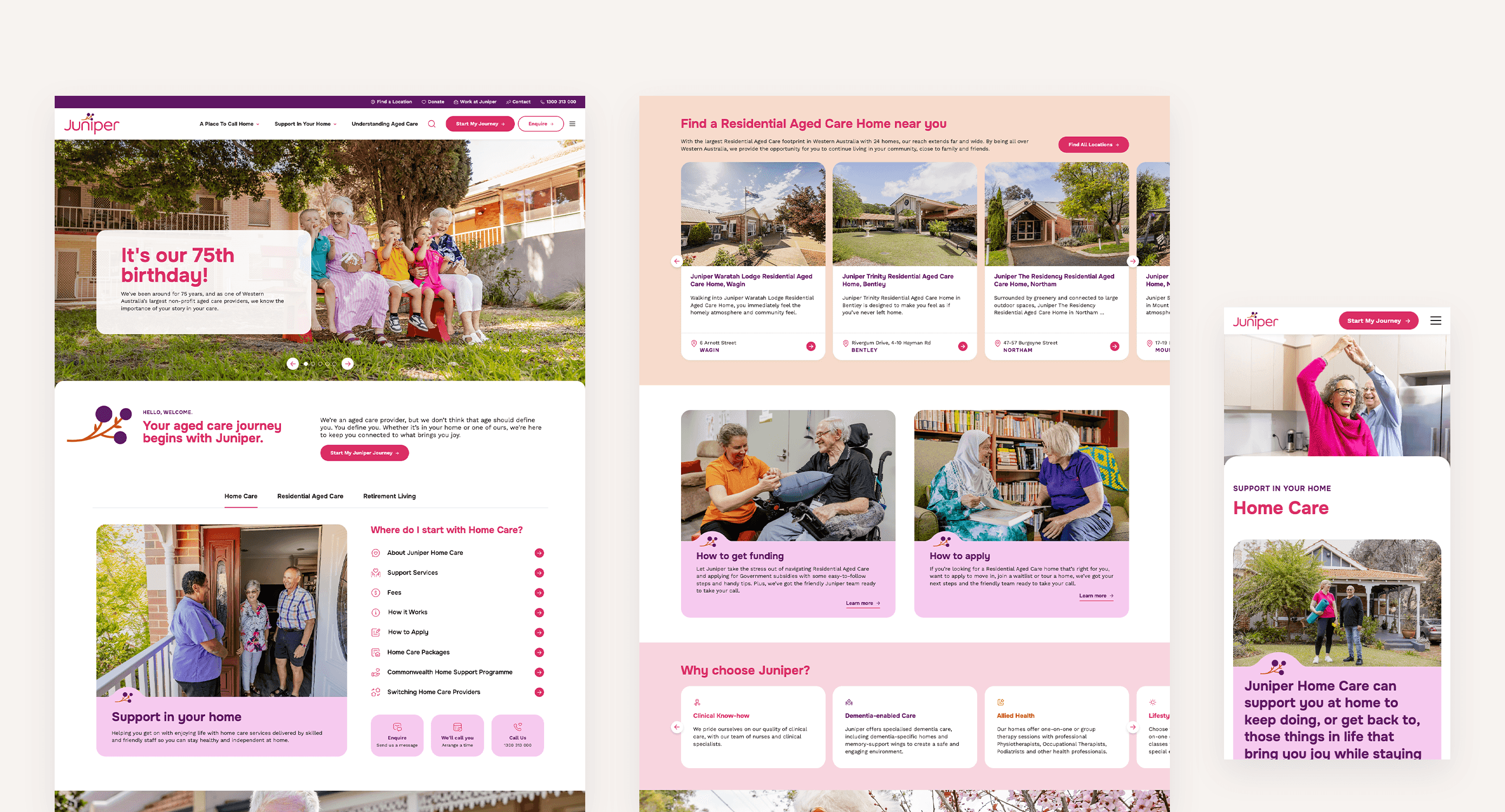 Juniper’s existing website served its purpose but needed to evolve alongside the organisation’s growing services. Managing content was not as efficient as it could be, and the site’s structure made it less intuitive for users to navigate key services like residential and home care. Additionally, the site required optimisation for a seamless mobile experience.